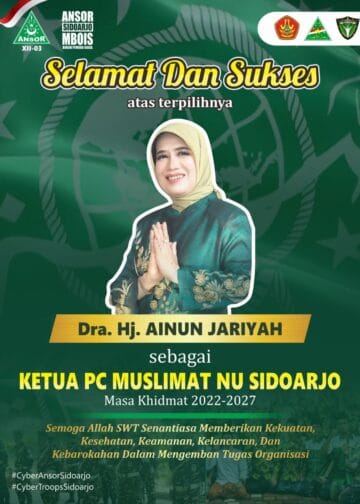 Terpilihnya Dra. Hj. AINUN JARIYAH sebagai KETUA PC MUSLIMAT NU SIDOARJO. Hal ini menjadi kabar gembira sekaligus menjadi dorongan semangat